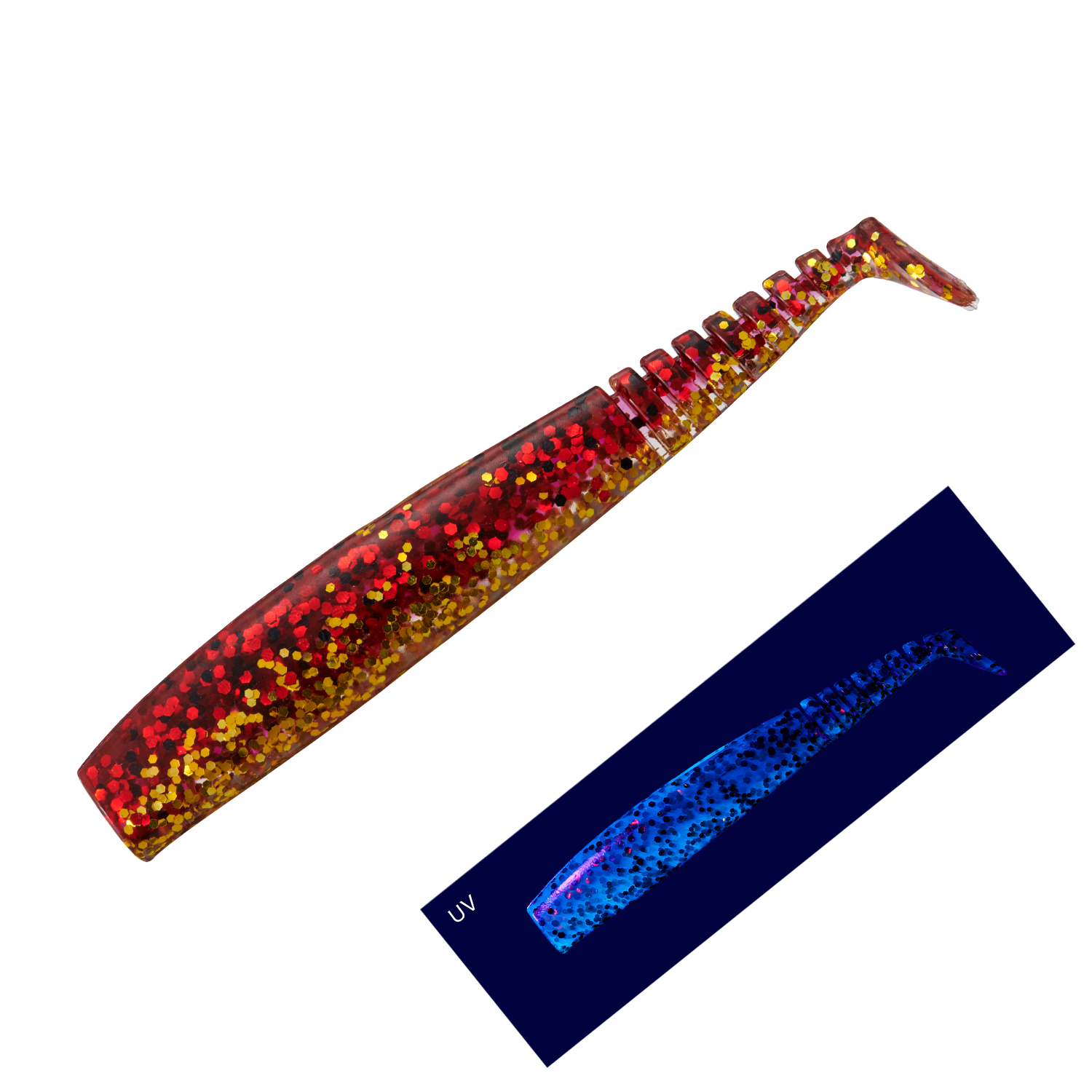 ①テールのみに入れたスリットが効果的に小刻みにシャッドテールをアクションさせます。