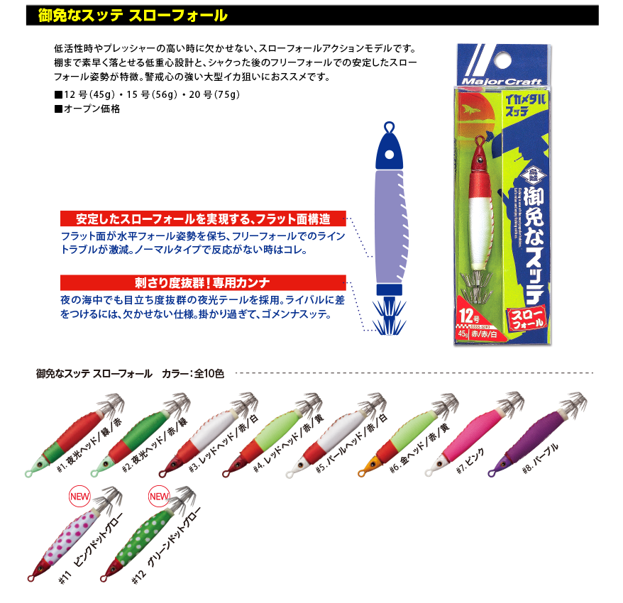 | 御免なスローフォール | 12〜20号 | 45〜75g |