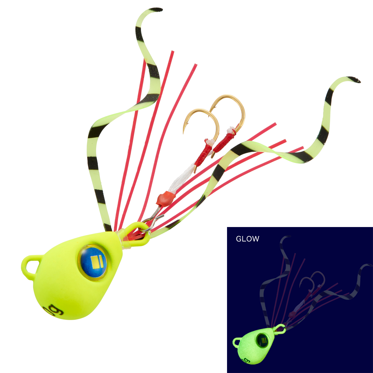 水キレの良いヘッド形状なので安定した水中姿勢とカーリー形状のネクタイの動きと波動で魚たちを誘惑します。低重心ヘッドでフォール姿勢が安定しているのでフォール中にヒットすることもあるでしょう。針は日本製「ジャパンフック」を採用しているので、一瞬のバイトもフッキングに持ち込めます。