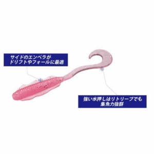 action: サイドに設けたエンペラがドリフトやフォールに最適なモデル。強い水押しはリトリーブでも集魚力抜群。