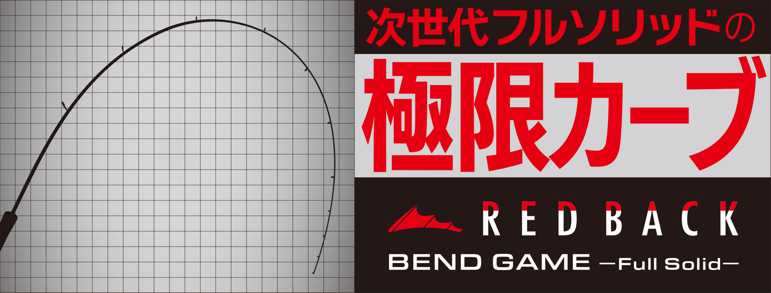 年々進化するフルソリッドタイラバロッドですが、リールやラインの進化に合わせてレッドバック ベンドゲームモデルは、さらにしなやかなセッティングにより「究極の乗せ調子」を目指しました。特に鯛の活性が低い状況において、真鯛に違和感を与えずにフッキングまで持ち込めるパワーバランスを採用。真鯛のアタリを弾くことを抑えて、フックが掛かるとそのまま貫通できるセッティングです。フルソリッドならではのバットまでのしっかり曲げ込んだファイトを楽しんでもらいたい曲がるレッドバックシリーズです。